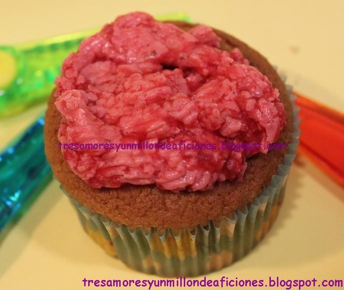 Aquí os dejo mis fotos y unas pequeñas recomendaciones por si algun@ tiene la misma idea peregrina que yo para hacer el buttercream, que desista y lo haga tal cual dice Alma. Si es que las prisas y la cocina no hacen buenas migas ;-b.
