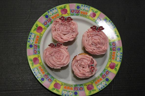 Cupcakes de vainilla con frosting de mascarpone de fresa