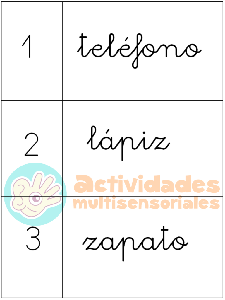 visual, auditiva y kinestésica, vuelve a colocar junto a la tarjeta los objetos