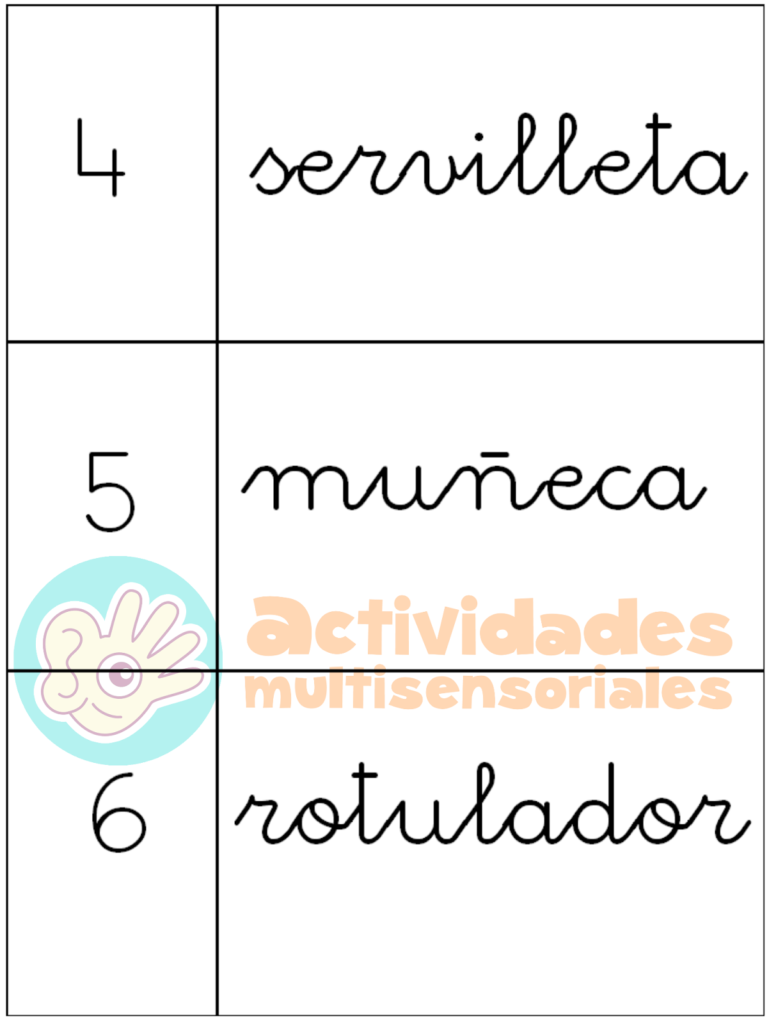 preparación de las tarjetas es escribiendo el número y la palabra en una