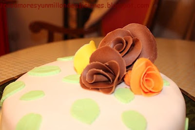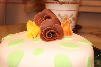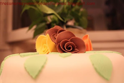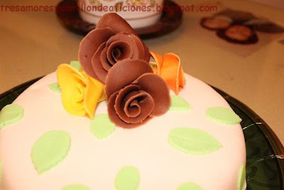 Uno de los proyectos ha sido hacer rosas de fondant para decorar una tarta. Yo creo que para ser las primeras no me han quedado mal, así que ahí os dejo un reportaje fotográfico de mi tarta de rosas.